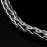 This chain features a unique foxtail pattern, characterised by its interwoven links that create a fluid textured appearance reminiscent of fox's bushy tail. Each link is meticulously crafted from recycled sterling silver.