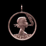 Smoking Queen hand cut coin pendnat is playful take on our late monarch.