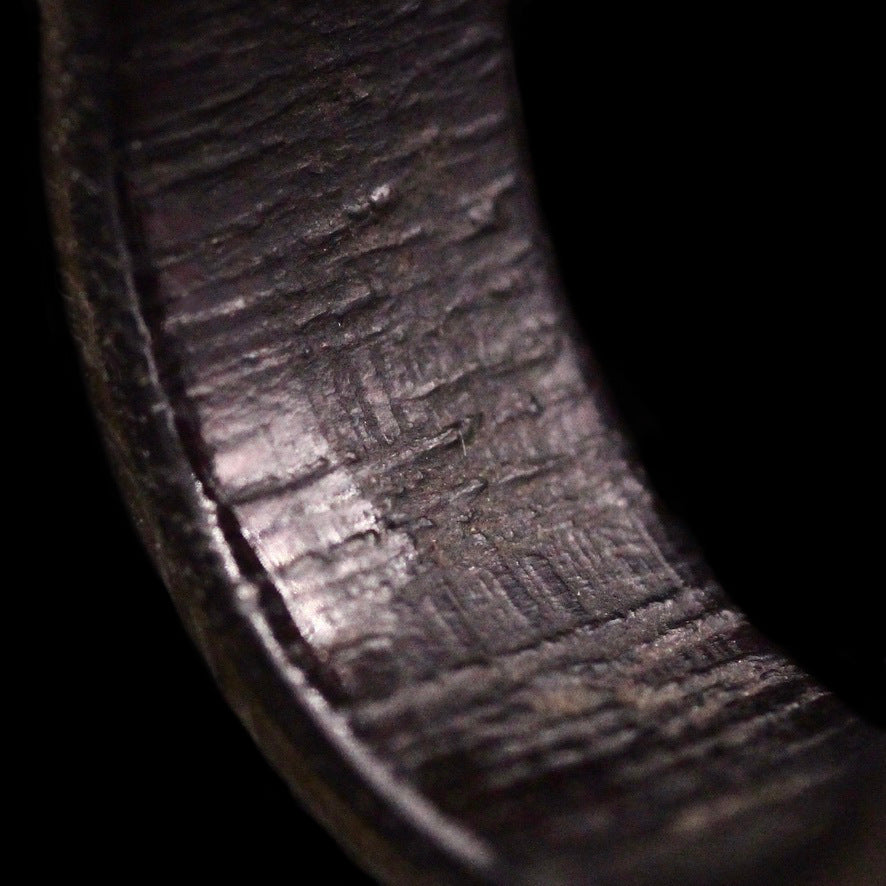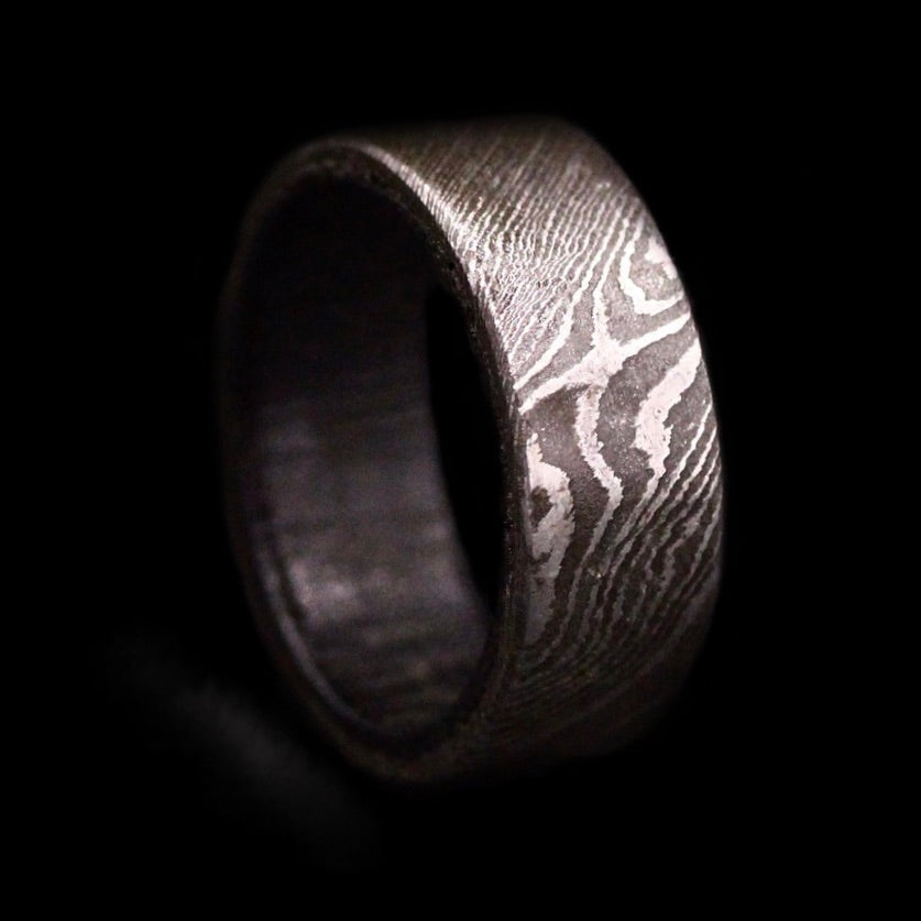 This ring is 8.5mm wide, V 1/2 in size. Purple Heard wood is naturally nearly black in colour with purple tint.