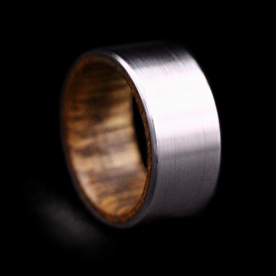 This ring is a one off, T in size  and  10mm wide.  We have used a wing bearing from C-130J Hercules, the largest military airplane.  Wing bearing itself is made out of titanium. Oak wood has been sourced from old Victorian furniture.