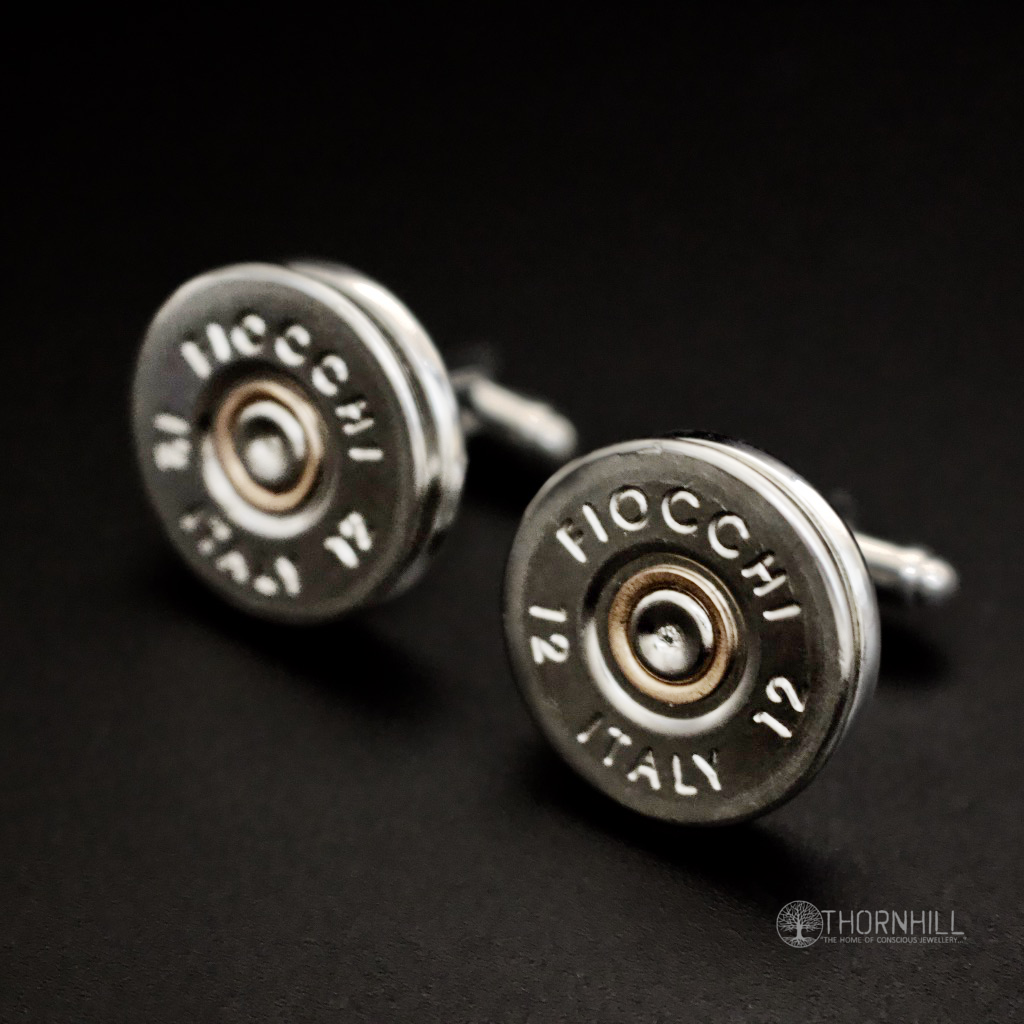 12 bore shotgun cartridges cufflinks, each pair is presented in a beautiful, black box with the Thornhill. Great men's gift, wedding favour, best man, birthday etc.