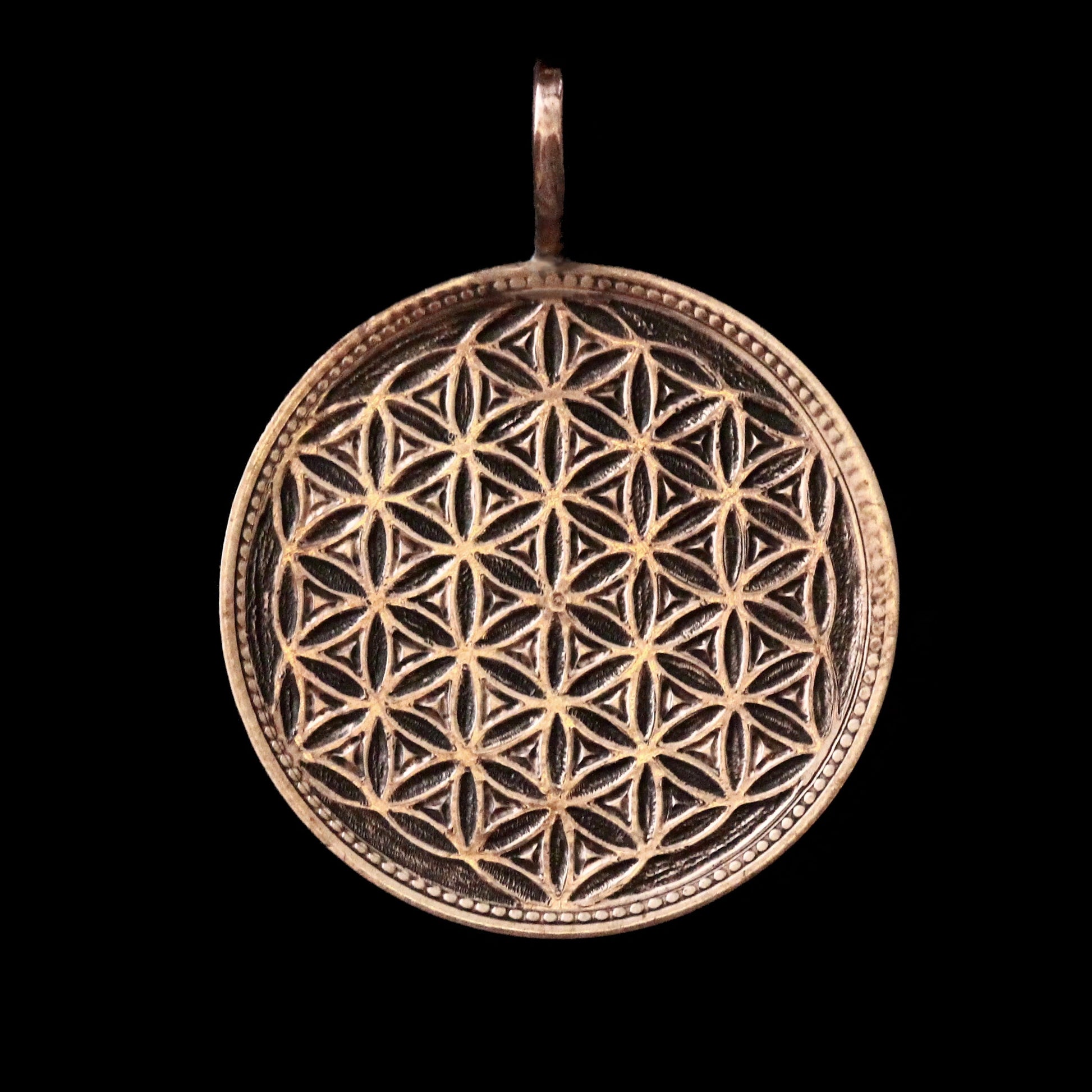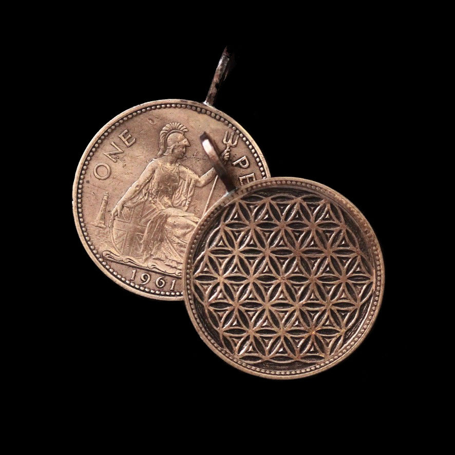Flower of Life Coin Pendant is a symbol representing circle of creation and has the virtues of regeneration, balance, dynamism, and protection. Sacred geometry refers to the geometric patterns and laws that create everything in the universe. Flower of life consists of 19 overlapping and interconnected circles.