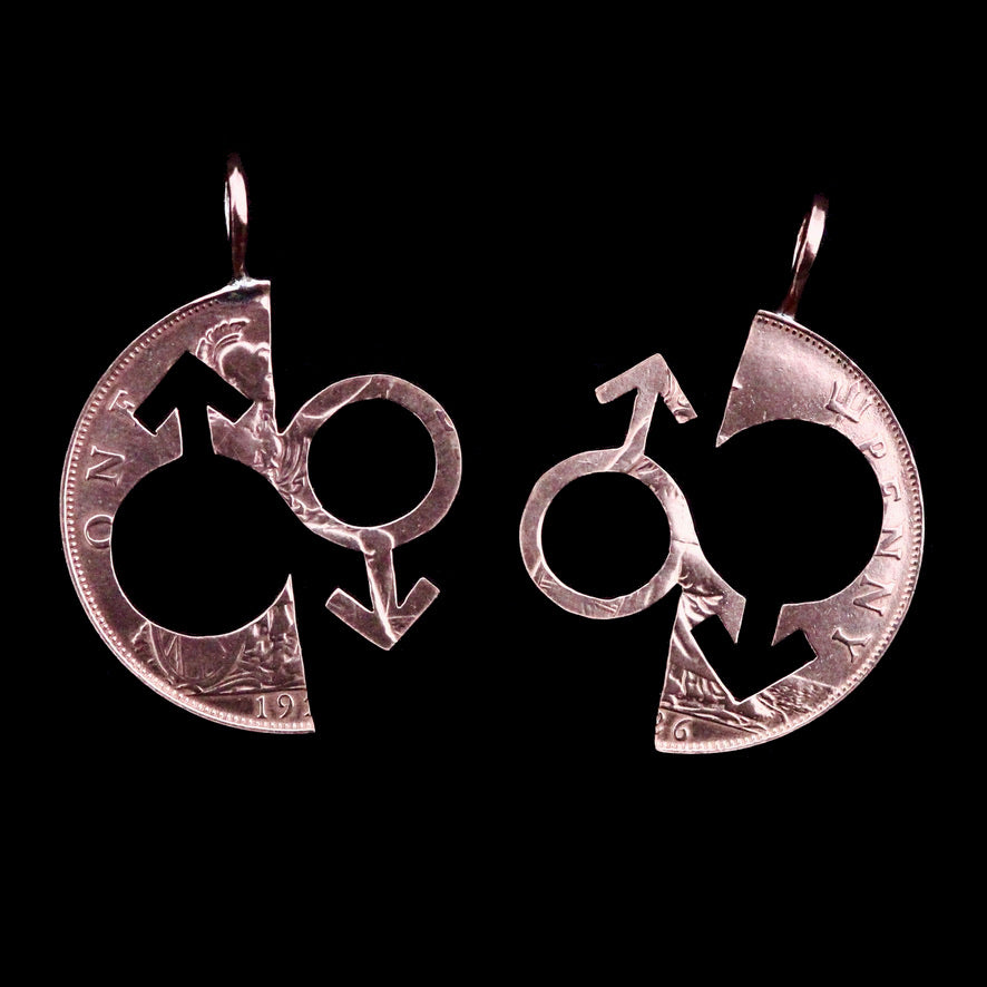 These unique bespoke male and male interlocking coin pendant for someone special in your life. Aways have them close to your thoughts. Tell us the year that person was born or the year that you met.