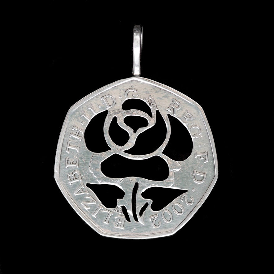 Rose Hand Cut Coin Pendant simplistic in it's design but it makes statement.