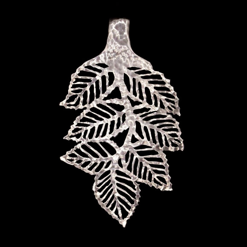 Rose Leafs, finely cut into a spoon pendant. This design looks fantastic on a standard-sized table or soup spoon, but really stands out when cut into a larger serving spoon.