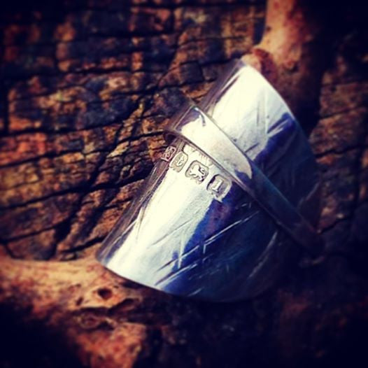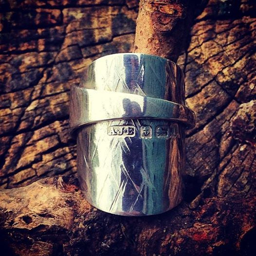 Solid Silver spoon Ring with Criss Cross paten
