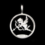 Cupid Cut Coin Pendant is inspired Roman god of love. Pendant symbolises love, romance and affection. Chose the year when you first met to make it even more special.